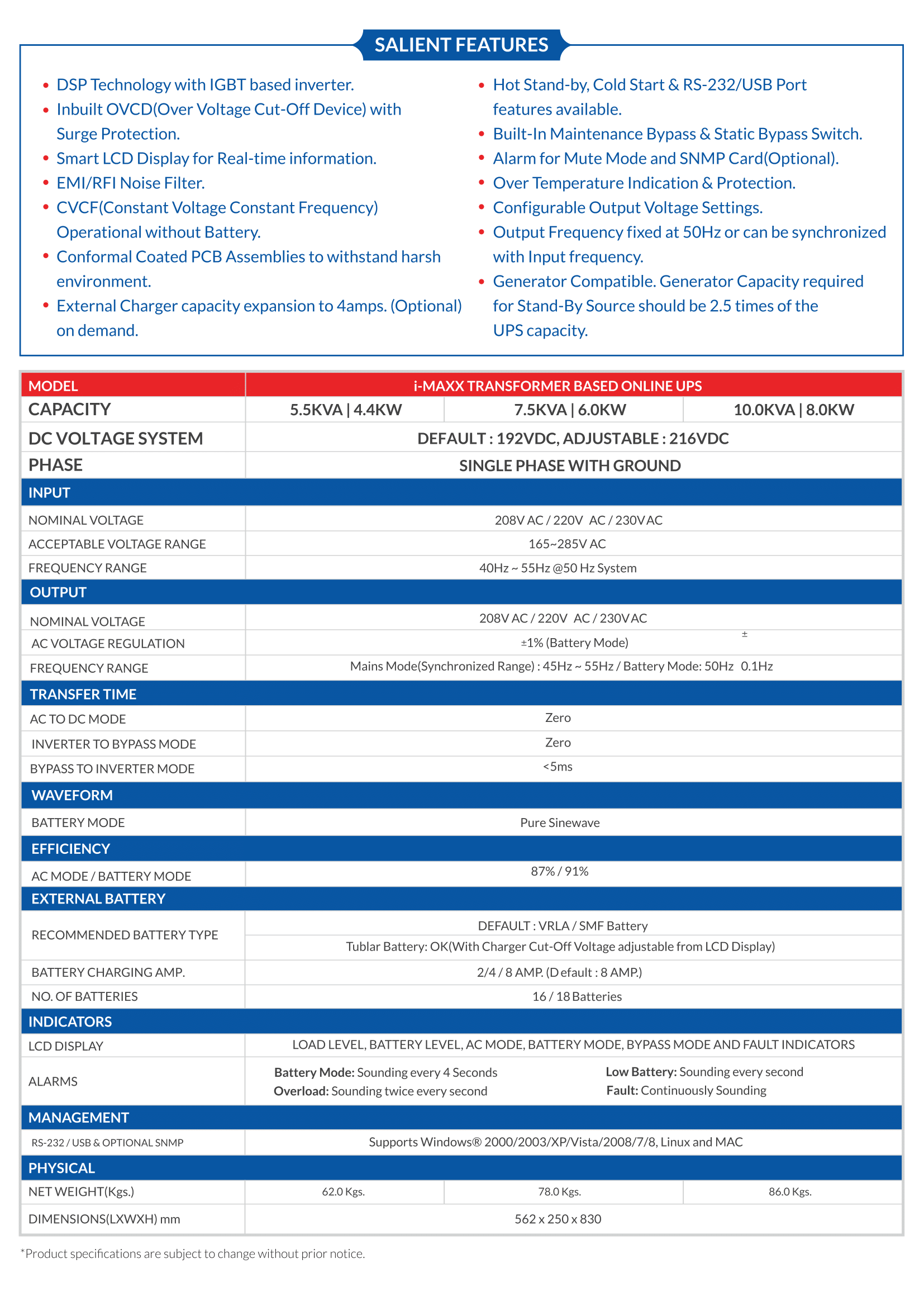 | Capacity | 1 KVA |